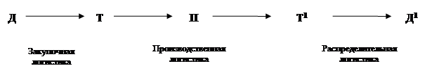 Рис. 6. Структурная схема каналов распределения товаров народного потребления (ТНП) На данной схеме изображены два производства (А и В), выпускающие одинаковые товары. Это означает, что каждый из распределительных центров может выбирать поставщика с более выгодными для себя условиями поставки. В свою очередь, производство может выбирать различные каналы распределения. Например, из производства А товар может попасть к конечному потребителю по одному из следующих четырех маршрутов: 8 ; 1-6 ; 1-7-5 ; 2-5 . Очевидно, что если производство А выйдет на рынок и самостоятельно свяжется с конечным потребителем (маршрут 8), то первоначальная стоимость товара возрастет лишь на сумму расходов, связанных с доставкой, так как посредники (распределительные центры) будут исключены из цепи. Однако в этом случае потребитель вынужден будет покупать у одного поставщика большое количество одинакового товара, что скорее всего для него неприемлемо. Второй маршрут (1-6) неудобен по тем же причинам. Распределительный центр № 1 расположен в месте сосредоточения производства и, как правило, закупает и продает большие партии однородного товара. Эта категория посредников также не формирует широкого ассортимента. Широкий торговый ассортимент формирует оптовик (распределительный центр № 2), расположенный в месте сосредоточения потребления. Этот посредник специализируется на оказании максимального сервиса конечному потребителю. Таким образом, канал 1-7-5 обеспечивает наибольший сервис потребителю, но при этом включает двух посредников, то есть стоимость товара будет наиболее высокой. Необходимым условием возможности выбора канала распределения, а также оптимизации всего логистического процесса на макроуровне, является наличие на рынке большого количества посредников. В частности, оптимизация канала распределения, а затем и логистической цепи, возможна лишь при наличии на товарном рынке большого количества предприятий, осуществляющих функцию опта. Актуальность создания сети оптовых посредников для стран СНГ очевидна. Правовое обеспечение экономической деятельности должно облегчать формирование и реализацию хозяйственных связей. информационные сети — делать возможным быстрый обмен информацией, финансовая система — обеспечивать быстрое прохождение финансовых средств. Решение перечисленных задач является и функцией государства, которое должно создать условия, способствующие развитию и оптимизации систем распределения материальных потоков. 1.5. Логистика и маркетингМаркетинг представляет собой систему управления, позволяющую приспосабливать производство к требованиям рынка в целях обеспечения выгодной продажи товаров. Главное звено в цепи воспроизводственного процесса, на котором товары находятся в сфере внимания маркетинга — это звено Т1 — Д1 (см. рис. 5.) Распределительная логистика изучает движение материальных потоков и осуществляет управление ими на этом же участке. Отличие заключается в том, что данный участок для маркетинга является приоритетным, в то время, как для логистики распределение рассматривается как составная часть более общего процесса — управления сквозным материальным потоком. Следует сказать, что на протяжении последних 25 лет взаимодействие маркетинга и логистики явно недооценивалось. Только в последние годы пред