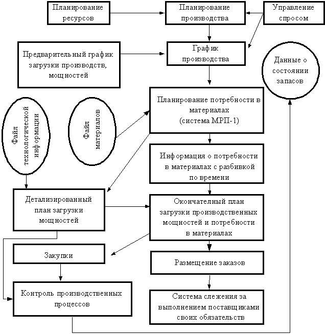 Рис. 2.2. Функциональная схема логистической модели МРП-2 Глава 2. Применение производственной логистики на примере Ижевского завода 2.1. Краткая характеристика предприятия Одним из факторов, определяющих производственную логистику на Ижевском автозаводе, является то, что на одном конвейере непрерывно собирается шесть различных моделей автомобилей. Какова технология управления запасами и в чем выражается логистический подход при управлении производством в этом случае? Управление запасами такого крупного предприятия, как автозавод в Ижевске, – сложный процесс, который зависит от целого ряда особенностей машиностроительного производства и множества различных внешних факторов. На автозаводе в Ижевске выпускают две марки «ВАЗ» («ВАЗ-21043» и «ВАЗ-2106») и шесть марок «ИЖ» («ИЖ-2126», «ИЖ-2126 454», «ИЖ-2717», «ИЖ-27171», Fabula и «Ника»). Главной особенностью производства этого предприятия является одновременная сборка шести разных моделей автомашин на единственной действующей ветке конвейера. ОАО «ИЖ-Авто» создало свою технологию управления запасами предприятия, которая направлена на достижение двух основных целей [12]: · обеспечить предприятие постоянным набором всех комплектующих, необходимых для сборки автомобиля (модели «ВАЗ» собираются из комплектующих, которые частично поступают из Тольятти, остальные запчасти закупаются заводом самостоятельно); · обеспечить запчастями сервисную сеть для гарантийного и послегарантийного обслуживания проданных автомобилей. На сегодняшний день технология выглядит следующим образом (рис. 3.1.) [6].