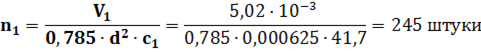 где V1 – объемный масла при средней температуре, м3 /час f1 – проточное сечение; м2 с1 – скорость движения в трубках, м/с с = 8. Число труб, обеспечивающих такой режим, должно быть: