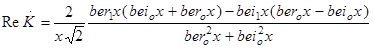 ber0 -, bei0 -, ber1 - и bei1 – функції Кельвіна нульового та першого порядків від узагальненого параметра х. Як бачимо з (1) – (5), амплітуда і фаза параметра