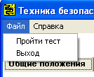 Руководство программиста: Для запуска программы необходимо открыть файл «test.exe» Для корректной работы программы необходимы следующие условия: · Процессор: Pentium II 400 МГц · Оперативная память: 128 Мб · Свободное место на диске: 4 Мб · Монитор: 800х600, TrueColor · Клавиатура · Мышь Руководство оператора: Для запуска программы необходимо открыть «test.exe». После запуска программы появляется основная форма на которой расположена тестирующая информация. Для перехода между вопросами используется кнопка «Принять». Также на основной форме расположено меню. Меню состоит из пунктов «Файл» и «Справка». В пункте «Файл» есть подпункты «Пройти тест» (для перехода к тесту) и «Выход» (для завершения программы). В пункте «Справка» есть подпункты «О программе» (для вывода информации о программе) и «Об авторе» (для вывода информации об авторе). Для начала прохождения теста необходимо нажать кнопку «Начать тест», расположенную в меню. Для перехода к следующим вопросам теста используется кнопка «Принять». При переходе к последнему разделу теста для просмотра резальтатов используется конопка «посмотреть резальтат тестирования» в том же разделе расположена кнопка выход для выхода из программы. Заключение