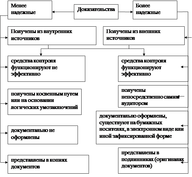 Рис. 1 - Факторы, влияющие на надежность аудиторских доказательств Можно дать следующие общие принципы оценки доказательств (рис. 2):
