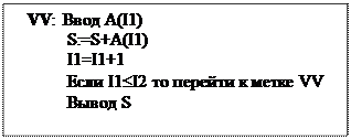 Длина=d Конец функции Основная программа: Ввод координат вершин треугольника xA, yA, xB, yB, xC, yC. P=Длина(xA,yA,xB,yB)+Длина(xB,yB,xC,yC)+Длина(xA,yA,xC,yC) Вывод P Задача 2. Дан массив целых чисел {Ai }, где i=1,2,3,…,M, причем М=15. Программа вычисляет произведение сумм некоторых элементов этого массива. Какое алгебраическое выражение описывает работу программы? В программе введены следующие константы: G=1; W=12; T=8; L=15. Программа 15; Начать функцию Функция SUMMA(I1,I2); S=0; НЦ для I:=I1 до I2 S:=S+A(I) КЦ; SUMMA:=S Конец функции; Начать программу Писать (‘Введите значение массива A’); НЦ для J:=1 до M Читать (A(J) КЦ; P:= SUMMA(G,W)*SUMMA(T,L); Писать (‘Произведение равно:’, P:6); Конец программы. Варианты ответов: 1. Правильный ответ с номером 2.