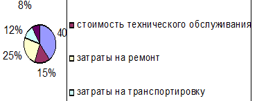 Рис. 21. Стоимость жизненного цикла агрегата воздушного средства после внедрения системы «АвиаДот» ГУП «Авиатехснаб» ГА совместно с Минским авиаремонтным предприятием заключило соглашение по внедрению системы «АвиаДот» на выпускаемую продукцию. Что предусматривает создание единой информационной базы и маркировку продукции с помощью системы «АвиаДот» [20]. 3.3 Оценка экономического эффекта от внедрения системы «АвиаДот» на примере Минского авиационного заводаОбщая мощность ремонтного производства составляет до 2200 агрегатов в течение года. Общая стоимость ремонта агрегатов согласно прогнозу данных о мощности завода при средней стоимости одного агрегата в 26400 руб. составит 58080000 руб. в год [20]. При проведении оценки эффекта от логистической поддержки ЖЦИ согласно имеющейся статистике затраты на закупку продукции составляют около 30% всех затрат, которые несет потребитель. Остальные 70% затрат относятся к сфере эксплуатации, в том числе: 1) стоимость запчастей в течение ЖЦИ – 40%; 2) затраты на заказ и хранение запчастей -15%; 3) затраты на учет (инвентаризацию) запчастей – 10%; 4) стоимость управления конфигурацией изделий в процессе ЖЦИ – 5%[20]. Гарантийный ремонт и обслуживание поставляемой продукции (агрегатов) составляет в среднем 29040000 руб. Таким образом, стоимость поставок и послепродажного обслуживания на протяжении всего жизненного цикла агрегатов