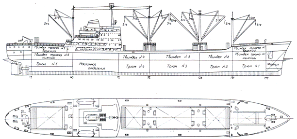 Для перевозки морским транспортом будут использоваться два универсальных судна. Поскольку количество предоставляемого к перевозке груза составляет 21000 тонн в порт Мурманск и 4000 тонны в порт Калининград, то суда подобраны исходя из чистой грузоподъемности судов. Два судна типа «Пула», Дч =11425 тонн для доставки в порт Мурманск и судно типа «Пионер», Дч =4087 тонн для доставки в порт Калининград. Общий вид универсальных судов представлен на рисунке 20.