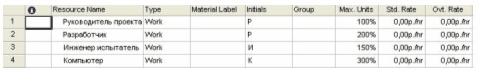 4.7 Распределение ресурсов проектаВ MSProject 2003 под ресурсами подразумевается все то, что необходимо для выполнения работ по реализации проекта. Это могут быть: ¾ Люди; ¾ Техника; ¾ Механизмы; ¾ Различные расходные материалы. На рисунке 4.3 представлен список ресурсов, необходимых для выполнения задач.