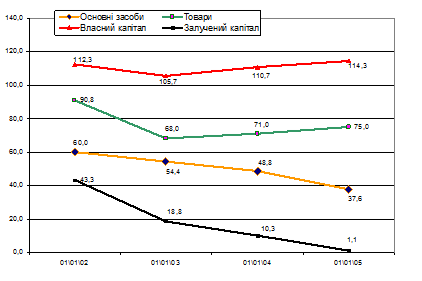 Аналізуючи активи підприємства, можна зробити висновок, що більшу їх частку складають товари. Станом на 01.01.08 вони складають 64%. Для підприємства що займається роздрібною торгівлею та є закладом громадського харчування це є позитивним показником.