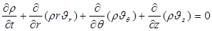 Уравнения сохранения массы в цилиндрических координатах (r,Ө,z):