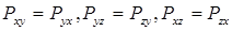 В компонентах тензора напряжений первый индекс указывает направление нормали к площадке, на которой действует данное напряжение, второй индекс - направление действия напряжения. В силу симметрии тензора напряжений справедливы следующие равенства (закон парности касательных напряжений):