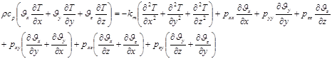 где Сυ - удельная теплоемкость жидкости при постоянном объеме. q- вектор теплового потока, k- коэффициент теплопроводности жидкости. Уравнения сохранения массы (уравнения неразрывности) в прямоугольной системе координат (x,y,z):