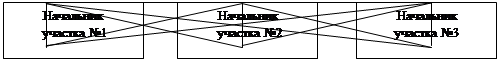 Рис.1. Фрагмент линейной структуры Этот вид структуры характерен для нижних уровней управления: начальник участка – старший мастер- мастер. Функциональная структура основана на разделении между структурными подразделениями (специалистами), с подчинением им всех нижестоящих подразделений (рис. 2).