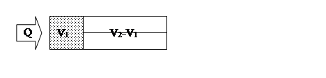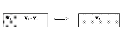 Подчеркнем, что выбор отдельных обратимых процессов в уравнении 1 или пути интегрирования в уравнении 2 могут не иметь ничего общего с тем, каким образом в действительности система переходит из состояния В в состояние А. Реальные процессы, как правило, необратимы. Однако в равенствах (1) и (2) δQ соответствуют обратимым переходам. Поскольку энтропия является функцией состояния, то есть величиной, которая не зависит от того, каким путем было достигнуто это состояние, то выбор пути обратимого процесса не имеет значения. В качестве примера рассмотрим изменение энтропии при расширении газа в пустоту. Пусть первоначально газ находился в объеме V1 , объем V2 - V1 пустой (рис. 1).
