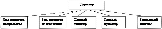 Как видно из таблицы 2, в 2005 г. предприятие понесло убытки на сумму -353,679 тыс. рублей. Согласно тому же годовому отчету за 2005 г., на балансовой прибыли существенно отразился тот факт, что выручка от реализации товаров, продукции, работ и услуг оказалась меньше себестоимости их реализации на сумму 353,697 тысяч рублей. Деятельность предприятия в 2006 году была прибыльной и составила 473,169 тысяч рублей, из которых 165,61 тысяч рублей составил налог на прибыль. Что касается, 2007 года, то была получена прибыль в размере 1553,699 тысяч рублей; при этом балансовая прибыль составила 236,030 тысяч рублей и при этом налог на прибыль составил 40,809 тысяч рублей. В целом, по показателям, приведённым к 2007 году, надо сказать, что в 2006 г. все данные больше, чем в 2007 и 2005 годах и в результате была получена самая крупная прибыль за рассматриваемый период, которая практически перекрыло убыток предыдущего года, а если суммировать эту прибыль с прибылью 2007 года, то получим положительный результат деятельности за период 2005 – 2007 годов. 2. 3 Анализ организационной структуры ООО «Сабин» В данный момент штат сотрудников фирмы составляет 15человек. На предприятии используется линейная структура управления. Организационная структура ООО «Сабин» выглядит следующим образом: Рис. 3. Организационная структура ООО «Сабин»