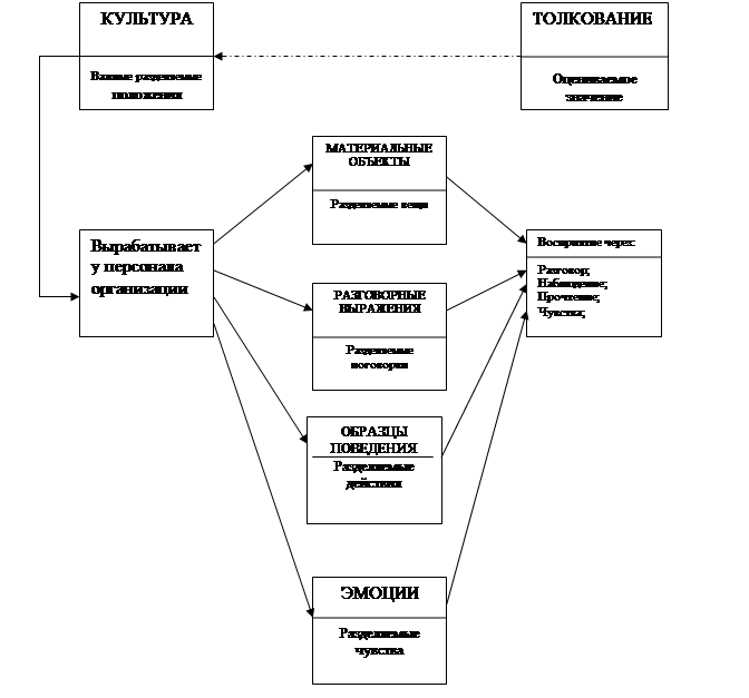 МИНИСТЕРСТВО ОБРАЗОВАНИЯ РЕСПУБЛИКИ БЕЛАРУСЬ ИНСТИТУТ ПАРЛАМЕНТАРИЗМА И ПРЕДПРИНИМАТЕЛЬСТВА Кафедра экономики КУРСОВАЯ РАБОТА по учебной дисциплине "Управление персоналом" на тему: Организационная культура и ее совершенствование Студентка Шуль Анна Григорьевна 5 курса 11212 группы социально-экономического фак-та специальность ГУ Номер зачетной книжки 11312/12 Телефон 768-79-13 Руководитель Хороненко Ирина Павловна Минск 2006 СОДЕРЖАНИЕ Введение …….3 1. Введение в проблему изменения организационной культуры ……..5 2. Особенности организационной культуры ……14 2.1. Критерии анализа и принципы организационной культуры..14 2.2. Структура организационной культуры ……16 3. Совершенствование организационной культуры ……19 3.1. Условия совершенствования организационной культуры ……19 3.2. Использование рамочной конструкции для диагностики и изменения организационной культуры. ……20 3.3. Пути совершенствования организационной культуры ……22 3.4. Изменение личности – ключ к изменению культуры. ……25 Заключение ……28 Приложения ……30 Список использованных источников ……36 ВВЕДЕНИЕ Выражение «культура» в отношении организаций со временем стало обозначать доминирующую систему ожиданий и ценностей членов организации. Пожалуй, организационную культуру необходимо рассматривать как две стороны одной медали, одной стороной которой служат разделяемые ценности и нормы поведения, а на другой – ожидания. На поверхности лежит явная культура, проявлением которой служит характер управления. Под поверхностью скрыта безусловная культура, которая хранит в себе мнение руководства и персонала в отношении того, что действительно важно. Безусловная культура, вероятно, более четко отражает реальность. Организационная культура – это специфическое для данной организации ценности, отношения, нормы поведения, установки, традиции, ритуалы. Она определяет типичный для членов организации подход к решению проблем. В своей курсовой работе я поставила цель раскрыть понятие организационной культуры как эффективного стратегического инструмента для управления персоналом. В задачи моей работы входит: 1. выявить проблему и необходимость культурных изменений; 2. раскрыть смысл организационной культуры; 3. показать методы и пути диагностики и совершенствования организационной культуры. В первой главе я делаю небольшое введение в проблему изменения организационной культуры, а также показываю необходимость управления ею. Раскрываю понятие организационной культуры и привожу некоторые теории известных ученых, разработавших типологию культур. Вторая глава посвящена структуре организационной культуры, критериям ее анализа и принципам, которые характерны преуспевающим организациям. В третьей главе я рассматриваю способы и инструменты, с помощью которых можно воздействовать на улучшение культуры организации. Привожу описание индивидуального совершенствования, которое необходимо для эффективного управления и роста успехов организации. Для изложения темы были использованы написанные в последние годы учебники и учебные пособия белорусских и зарубежных авторов, а также исследовательские работы известных ученых. Из этого списка особенно хотелось бы выделить книгу К.С. Камерона и Р.Э. Куинна «Диагностика и изменение организационной культуры». Задачей этой книги явля
