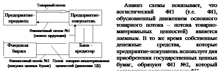 потоков зависит и от формы безналичных расчетов, и от дополнительных условий платежа, предусмотренных договором купли – продажи. При финансовом обслуживании товародвижения широко используются также ценные бумаги и векселя , как финансовые инструменты фондового рынка. Их применение позволяет увеличить чистую прибыль хозяйствующих субъектов за счет сокращения налоговых платежей . Давайте рассмотрим некоторые схемы уменьшения налогооблагаемой базы предприятий за счет применения этих инструментов фондового рынка. Предприятия – покупатели размещают свои средства, как правило, в коммерческих банках, и используют их для расчетов по сделкам купли-продажи. В то же время гораздо эффективнее направлять имеющиеся средства на покупку государственных ценных бумаг (ЦБ) , для которых предусмотрено льготное налогообложение, а для закупки товаров – брать кредит в банке. В этом случае проценты по кредиту в пределах ставки, установленной законодательством, учитываются в составе затрат на производство и обращение товаров, а значит, включаются в стоимость товара. Налогооблагаемая прибыль предприятия, соответственно, уменьшается, а доход, полученный по приобретенным ценным бумагам, подлежит отдельному учету и льготному налогообложению. Все это может быть изображено в виде следующей схемы.