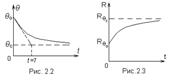 На рис.2.2 показан процесс изменения температуры терморезистора при его остывании. С остыванием терморезистора сопротивление его увеличивается (рис. 2.3). Знание зависимостей R ( q ) (рис.2.1) и R ( t ) (рис. 2.3) позволяет, задаваясь значениями R и определяя по кривым рис. 2.1 и 2.3 соответствующие им значения q и t , построить зависимость q ( t ) и определить t .