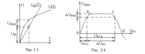 ) в режиме холостого хода приведена на рис. 3.4. Выходное напряжение остается приблизительно постоянным при изменении входного напряжения от Uвх1 до U вх2 , когда величина дифференциального сопротивления варистора равна или близка к величине сопротивления линейного резистора. Количественной оценкой стабилизации напряжения является коэффициент стабилизации