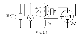 3.2 Осциллографическое исследование варистора. Подать питание на схему рис.3.5. Зарисовывать на кальку ВАХ варистора при напряжении на входе 60 В. Определить масштабы по току (по оси у) и по напряжению (по оси x ) для чего, не трогая регуляторов усиления осциллографа, переключатель П 1 перевести в положение «2». На экране осциллографа получится наклонная прямая – ВАХ линейного резистора. Регулируя напряжение, добиться того, чтобы ее крайние точки не выходили за пределы экрана осциллографа. Масштабы (при R >> R o ) рассчитываются следующим образом: