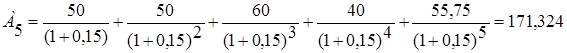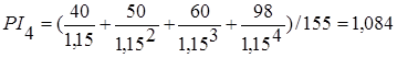 Так как А4 > К0 (164,122 > 155), то проект окупится и срок окупаемости можно рассчитать.