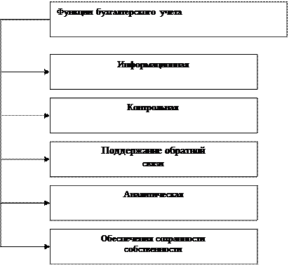 Рисунок - 2 Функции бухгалтерского учета Информационная функция в системе управления – одна из главных функций бухгалтерского учета, которая выполняется в системе управления. Бухгалтерская информация широко используется всеми видами хозяйственного учета с целью планирования и прогнозирования, а также для определения стратегии и тактики деятельности организации. Бухгалтерский учет фиксирует и накапливает всестороннюю синтетическую (обобщающую) и аналитическую (детализированную) информацию о состоянии и движении имущества и источниках его образования, хозяйственных процессах, о конечных результатах финансовой и производственно-хозяйственной деятельности предприятия. На всех этапах развития к бухгалтерской информации предъявляются требования: объективность, достоверность, своевременность, оперативность (20, с. 6). Обеспечение сохранности собственности – значимая в условиях рыночных отношений и наличия разных форм собственности функция. Данная функция осуществляется в зависимости от действующей системы учета и определенных предпосылок, таких как: - совершенствование системы учета; - применение передовых методов выявления недостач, растрат и хищений; - использование мерной тары, измерительных и контрольных приборов; - использование современных средств для сбора, обработки и передачи информации. Функция обратной связи необходима при управлении, она формируется и передается в виде информации о фактических параметрах развития объекта управления. Используя обратную связь, на основании фактических показателей осуществляется контроль за выполнением запланированных показателей, выявляются недостатки и резервы производства. Аналитическая функция. Реализация этой функции позволяет проводить анализ по всем разделам бухгалтерского учета, в том числе использования всех видов ресурсов, затрат на производство и продажу продукции, правильности применяемых цен, что имеет важное значение в условиях действия рыночных цен, инфляционных процессов. На современном этапе совершенствования управления, становления рыночной экономики к бухгалтерской информации предъявляются повышен-ные требования. Она должна быть высокого качества и эффективной, удовлетворять потребностям собственника, иностранного партнера, участвующего в создании и функционировании совместного предприятия. В зависимости от функции управления экономическая информация подразделяется на плановую, нормативную, учетную, аналитическую. Контрольная функция бухгалтерского учета. Контроль неотделим от учета. Контроль – проверка с целью обеспечения правильности и законности определенных действий. Настоящий, действенный контроль возможен только при правильной организации всего процесса бухгалтерского учета. Качественная учетная информация позволяет осуществлять контроль на разных стадиях производства, контролировать в случае необходимости во всех деталях деятельность предприятия и его подразделений, анализировать ее и на базе этой информации подготавливать, обосновывать и принимать соответствующие управленческие решения на разных уровнях управления. Различают три вида контроля: предварительный, текущий и последующий (заключительный). По форме осуществления они схожи и имеют одну цель: способствовать тому, чтобы фактически получаемые рез
