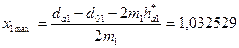 7. Максимальный коэффициент смещения исходного контура x1 max определяется из условия, что толщина головки зуба равна 0,4m1 . Для расчета требуется диаметр окружности головки зуба da 1 . предварительный расчет диаметра головки зуба проводится по формуле: