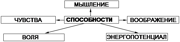 Внутреннее же строение механизма таланта человека, определенную связь составляющих элементов его целостности можно изобразить схемой: