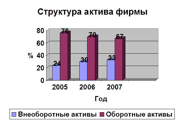 Диаграмма №3 «Структура пассивов фирмы» Диаграмма№3 показывает, что в структуре пассива наибольший вес на протежении всего исследуемого периода неизменно принадлежит собственному капиталу, обеспечивающему более устойчивое финансовое состояние и снижение риска банкротства, а так же защиту кредиторов от убытков. Благоприятным моментом так же является уменьшение в доли заемных средств долгосрочной задолжности с 8 до 1,2%.