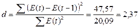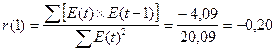 Условие выполнено (1,37<1,63<2), следовательно, уровни ряда Е (t) являются независимыми. 2) по первому коэффициенту автокорреляции r (1):