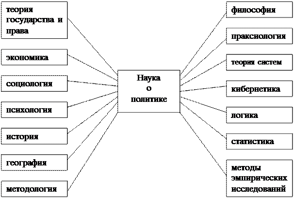 Тема 1. Политология как наука. 1. Политика как общественное явление.Политика – важнейшая сфера современной жизни. Она распространяется на все общество и на каждого человека. Вообще понятие определения «политика» впервые было дано в Древней Греции, где словом полис обозначалось государство, а словом политика – государственные или общественные дела, точнее искусство управления государством. На современном научном уровне существует несколько основных подходов к пониманию политики. Прежде всего, это исторический устоявшееся представление о политике как об управлении обществом; а поскольку этим более всего занимается государство, то политика при таком подходе сводится к государственной деятельности. Распространен взгляд на политику как на регулирование отношений между различными социальными слоями, этническими группами, государственными образованиями. Широко культивируется понимание политики как борьбы различных общественных групп и лиц за власть. Крупные теоретики политологии Г. Ласуэлл и А. Каплан утверждают, что политика связана с формированием власти. Выделение категории власти, в качестве определяющей вытекает из того, что сфера политики не только охватывает государство, политическую систему, но и выходит за их пределы. Особенно очевидно это во внутренней политике, где четко выявляются внеформальные, скрытые механизмы реализации общественных целей. Имеет место в современной науке и стремление свести политику к выражению экономических или идеологических интересов. Такой подход идет от Марксизма, от Ленинского высказывания: «… политика есть самое концентрированное выражение экономики». Итак, политика – это сфера деятельности, связанная с отношениями между социальными группами и различными общественными силами, целью, которой является завоевание, удержание, использование государственной власти. Такой подход берет свое начало у Аристотеля, который неразрывно связывал политику с государством. Но он соответствует и современным представлениям, ибо объединяет такие ключевые элементы, как деятельность – государство – власть. Современная политика имеет сложную структуру. Ее важнейшими элементами являются: Объекты политики – непрерывно меняющийся комплекс общественных проблем, решение которых требует структурных преобразований, реформ в обществе. Субъекты политики – непосредственные участники политической деятельности: люди, их организации, партии, движения преследующие политические цели, решающие политические задачи. Политическая власть – способность тех или иных политических сил оказывать решающее воздействие на общество, разрабатывать и осуществлять политику на основе баланса сил и интересов, подчиняя этому людей. Политические процессы – взаимодействие различных политических сил, субъектов политики в решении политических проблем, воздействие их на объекты политики. Политические идеи и концепции – теоретическое осмысление политического развития общества, отражение интересов и настроений различных социальных групп, разработка решений политических проблем. Перечисление только основных компонентов политики показывает, что как явление она огромна. Политика охватывает практически все сферы современной жизни. Кроме того, широко употребляются такие понятия: экономическая политика, техн