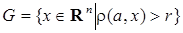 Пример 4. Множество , т. е. совокупность точек, удалённых от фиксированной точки на расстояние больше чем является открытым, что, как и в примере 3, легко проверить, используя неравенство треугольника для метрики.