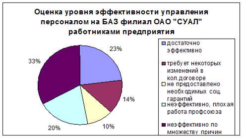 Примечание. Рисунок 7 составлен автором на основе социологического опроса среди работников предприятия БАЗ филиал ОАО «СУАЛ». Рисунок 7 – Оценка уровня эффективности управления персоналом на БАЗ филиал ОАО «СУАЛ» работниками предприятия. Итак, каковы у жителей г. Краснотурьинска оценка труда в целом, оценка конкретной профессии, оценка своей конкретной работы? Сравним основное градообразующее предприятие с другими организациям. В анкетировании участвовало по 100 человек из: а) работников БАЗ; б) работников других промышленных предприятий города; в) работников бюджетной сферы. При этом допускался выбор нескольких факторов. Результаты анкетирования представлены в таблице 10. Как видим, высказанные оценки и позиции довольно типичны, важный момент – понимание необходимости напряженного труда для получения высокого заработка. Кстати, людей готовых получать немного, лишь бы не выкладываться, буквально единицы. Но проявляется и определенное противоречие: каждый четвертый ориентируется на спокойную работу. Недооценивается значимость современной техники и технологии, перспектив профессионального роста. Чуть больший акцент на это у работников БАЗа, на профессиональный рост – у бюджетников. Растет значимость коллектива, но в то же время подчеркивается самостоятельность личности. Таблица 10 – Факторы, значимые при выборе работы