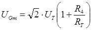 Обычно R3 3 R4 = —— = —— = 1,5 kOM k- 1 3-1 Если в качестве нелинейного элемента используется терморезистор (рис.2), то, выбрав на вольтамперной характеристике рабочую точку (Uт, Iт), находят сопротивление UT 6 R3 = RT = —— = — = 3 kOM (8) IT 2 Точку (UT, IT), через которую проходит динамическая характеристика терморезистора, выбирают по статической характеристике при UT » 0,8U2. Амплитуда генерируемого напряжения определяется из очевидного соотношения: