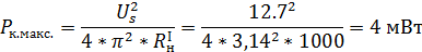 Принимаю конденсатор: 4.4 Выходной делитель напряжения Сопротивление делителя напряжения R5 (рис.1) выбирается, по крайней мере, в 4...5 раз меньшее, чем RH. Этим обеспечивается почти линейная зависимость напряжения Uн от перемещения движка делителя. Принимаю по ряду Е24: R5 = 0,39 кОм 4.5 Усилитель мощности Простейший усилитель мощности может быть собран на двух транзисторах с разным чередованием переходов – комплементарный эмиттерный повторитель. Мощность, выделяющаяся на коллекторе транзистора не превышает Величины: