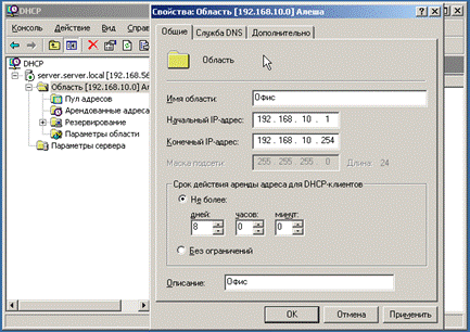 3. В окне «Мастер компонентов Windows» из списка Компоненты выберите пункт Сетевые службы и нажмите кнопку Состав . 4. В окне Сетевые службы установите флажок DHCP и нажмите OK . 5. Для запуска программы установки щелкните кнопку Далее в мастере компонентов Windows. Если потребуется, вставьте в дисковод для чтения компакт-дисков или DVD-дисков установочный компакт-диск Windows Server 2003. Программа установки скопирует на компьютер файлы сервера DHCP и необходимых служебных программ. 6. После завершения работы программы установки нажмите кнопку Готово . 2. 1.2 Настройка службы DHCP После установки и запуска службы DHCP необходимо создать область (диапазон допустимых IP-адресов, которые смогут использовать клиенты DHCP). Согласно рекомендациям корпорации Майкрософт у каждого сервера DHCP в сети должно быть по крайней мере по одной области, которая бы не пересекалась с областями других серверов DHCP в сети. В системе Windows Server 2003 серверы DHCP в домене Active Directory должны пройти авторизацию, чтобы случайные серверы DHCP не переходили в интерактивный режим. Любой сервер DHCP под управлением Windows Server 2003, не прошедший авторизацию, не будет работать с клиентами.