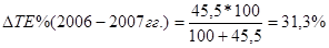 Разность между полученным и предыдущим результатом покажет изменение трудоемкости за счет экономии времени в связи с внедрением мероприятий: ΔТЕТн (2006-2007гг.) = 28,3 – 23,6 = +4,7; ΔТЕТн (2007-2008гг.) = 23,6 – 19,4 = +4,2; ΔТЕТн (2008-2006гг.) = 28,3 – 19,4 = +8,9. Третий условный показатель отличается от второго тем, что числитель не корректируется на непроизводительные затраты времени:[7, с.211]