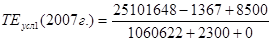 Если сравнить полученный результат с базовой трудоемокостью, то узнаем, как изменился ее уровень за счет интенсивности труда в связи с улучшением его организации, так как остальные условия приближены к базовым: ΔТЕинт (2006-2007гг.) = 28,4 – 23,7 = +4,7; ΔТЕинт (2007-2008гг.) = 23,7 – 19,5 = +4,2; ΔТЕинт (2008-2006гг.) = 28,4 – 19,5 = +8,9. Второй условный показатель отличается от первого тем, что при его расчете затраты труда не корректируются на Тэ:[7, с.211]