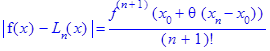 Если функция f(x), подлежащая интерполяции, дифференцируема больше чем n+1 раз, то погрешность интерполяции оценивается следующим образом: