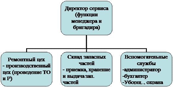 Таблица 14. Налоговые отчисления в органы налоговой инспекции. 7. Организационный план Предприятие является юридическим лицом, имеет самостоятельный баланс, расчетный и иные счета в учреждениях банков, круглую печать со своим наименованием, штамп, бланки, фирменное наименование. По организации производственной деятельности предприятие автономное, т. е. самостоятельное, осуществляющее все виды технического обслуживания и ремонта автомобилей «Volkswagen», «Skoda» и «Audi». Организационная структура строится по принципу функционального управления.Управленческую структуру представим в виде схемы, изображенной на рисунке 2.