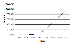 Рисунок 3.3 – Изменение рентабельности собственного капитала Как видим, рентабельность собственного капитала растет зигзагообразно, однако общая тенденция к росту рентабельности четко прослеживается.