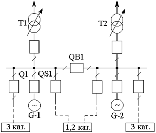 З таблиці 1.2 видно, що варіант №1 економічніший по всіх показниках, тому для подальшого проектування вибинраємо схему з автотрансформаторами типу АТДЦТН-125000/220/110. 2 Вибір схем розподільчих пристроїв На генераторній напрузі (низька сторона 10 кВ) вибираємо одиночну секціоновану систему збірних шин (рисунок 2.1), оскільки дана схема забезпечує достатню степінь надійності і порівняно дешева.
