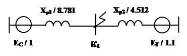 Рисунок 4.2 –Схема заміщення струмів КЗ в точці К-1 Знаходимо надперехідне значення струму КЗ в точці К-1