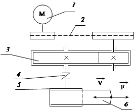 Рисунок 1 – Кінематична схема приводу стрічкового конвеєра: 1 – електродвигун; 2 – клинопасова передача; 3 – редуктор; 4 – муфта; 5 – барабан; 6 – стрічка Вихідні характеристики приводу