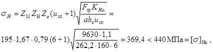 Таке недовантаження по згинальним напруженням зубів допустиме. Тому попередні розрахунки залишаються без змін. Розрахункові контактні напруження
