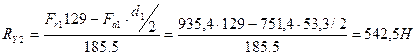 де: Ft – окружна сила, Н; Коефіцієнт навантаження КF = KFβ * KFν По таблиці 3.7 [1] при ψbd = 1,34, твердості НВ ‹ 350 і несиметричному рас-положенні зубчастих коліс щодо опор коефіцієнт КFβ = 1.36. По таблиці 3.8 [1] для косозубних коліс 8-й ступеня точності й швидкості 4,1 м/с коефіцієнт КFυ = 1,1. Таким чином, КF = 1,36 * 1,1 = 1,496. Коефіцієнт, що враховує форму зуба, YF залежить від еквівалентного числа зубів zυ - У шестірні - У колеса Коефіцієнт YF1 = 3,85 і YF2 = 3,6 (див. стор. 42 [1] ). Визначаємо коефіцієнти Yβ і КFα