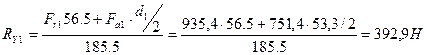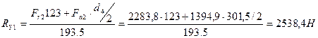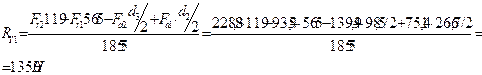 =1,2 Зазор від окружності вершин зубів колеса до внутрішньої стінки корпуса, а також відстань між зовнішнім кільцем підшипника провідного вала й внутрішньою стінкою корпуса А= Для запобігання витікання змащення підшипників усередину корпуса й вимивання пластичного матеріалу, що змазує, рідким маслом із зони зачеплення встановлюємо кільця, їхню ширину визначає розмір y=8-12 мм. Ми приймаємо y=10 мм. 6. Перевірка довговічності підшипників 6.1 Провідний вал
