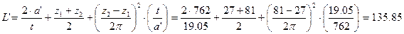 Вибираємо L = 136 – ціле і бажано парне. Розрахункова міжосьова відстань