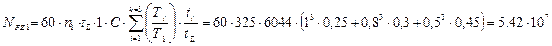 Оцінюємо еквівалентні строки служби передачі для розрахунку на контактну втому і втому при згині. - сумарний строк служби передачі