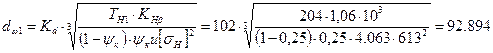 Допоміжний коефіцієнт для прямозубої передачі Таким чином мінімальний зовнішній початковий діаметр шестерні