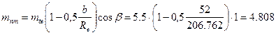 Вибираємо стандартне значення mte = 5,5 мм. (табл. П.9, /1/). Зовнішня конусна відстань Re = 0,5 ·mte · ZC = 0,5 ·5,5 · 75.186= 206.762мм, де Ширина зубчатих вінців. Робоча ширина зубчатих вінців Перевіряємо умову