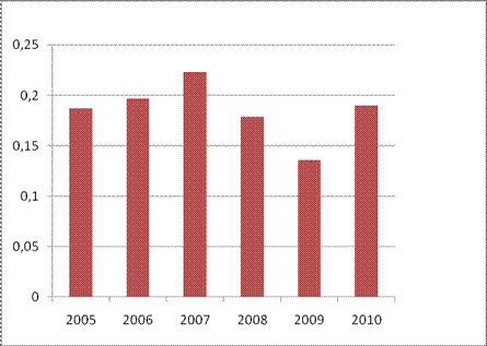 Рис. 1.2. Розподіл ринку енергетичного пінобетону на ринку України Залізобетонна продукція, вироблена трьома основними операторами ринку енергетичного будівництва, цілком задовольняє попит на даний вид виробів усередині Україні, залишаючи можливість для нарощування потужностей та виходу на міжнародний ринок. При цьому потрібно відзначити, що в період кризи з'явилися дрібні виробники, які за рахунок демпінгу цін та інших методів недобросовісної конкуренції намагаються закріпитися на ринку. [18] В останні роки в Україні величезними темпами йде будівництво супермаркетів, виробничих підприємств, складських приміщень, в перспективі - зведення недорогого соціального житла. Фахівці стверджують, що це саме та ніша, яка повинна бути зайнята ЗБВ в найближчі два роки. Вже зараз багато компаній зацікавилися будівництвом житла в більш низької цінової категорії. Технологічне рішення цього завдання - повернення до технологій із широким застосуванням залізобетонних виробів. Прогнозується, що даний вид будівництва буде істотно модернізований. Одною з особливостей ринку ЗБВ є його локальний розвиток. Виробництво ЗБВ знаходиться, в основному, у Київській (лідирує - 25%), Дніпропетровській, Харківській, Житомирській, Одеській, Вінницькій областях. Це пояснюється місцезнаходженням великих будівництв, а також дорогими транспортними витратами, інформує будівельний сайт domobaza.info. До фінансової кризи зростання ринку ЗБВ становив практично 30%. І треба відзначити те, що багато виробників були не проти повністю освоїти комплектні збірні конструкції для каркасного будівництва. І це можна зрозуміти: збірні ЗБК відмінно використовують при будівництві споруд з великими вільними площами і дуже великими прольотами (торгові, спортивні центри, промислові споруди і, звичайно, складські комплекси). Завдяки застосуванню ЗБВ можна додатково збільшити площу відкритого простору і довжину прольоту, і, відповідно, об'єкт буде служити довше. [17] З осені 2008 року попит на споживання та виробництво ЖБК став різко падати, тому що будівництво практично зупинилася. Однією з тенденцій сьогодення є бартер в якості оплати. І бартерні схеми стануть загальноприйнятими, якщо становище не зміниться. Ще одна неприємна тенденція - інвестори заморожують проекти, тому що не мають можливості отримати кредит. Основние тенденції та перспективи ринку залізобетонних виробів в Україну, на думку фахівців - це, перш за все: 1) застосування великорозмірних конструкцій і виробів зі збірного залізобетону; 2) застосування високоміцних бетонів; 3) застосування легких бетонів і тонкостінних конструкцій. 1.3. Аналіз основних техніко-економічних показників діяльності підприємства Спочатку розглянемо виробництво продукції на ДП МОУ «ХЗЗВ», оскільки це найважливіший показник, що характеризує виробничо-господарську діяльність підприємства і впливає на організацію праці на підприємстві. Виробнича програма характеризується натуральними і вартісними показниками. Натуральні показники не завжди цілком характеризують динаміку виробництва, оскільки не враховують структурних зрушень підвидів продукції, а також її якість. Тому при оцінці виконання виробничої програмі доцільно проаналізувати вартісні показники, які приведені в табл. 1.1. та 1.2. Таблиця 1.1 Аналіз обсягів виробництва продукції у 